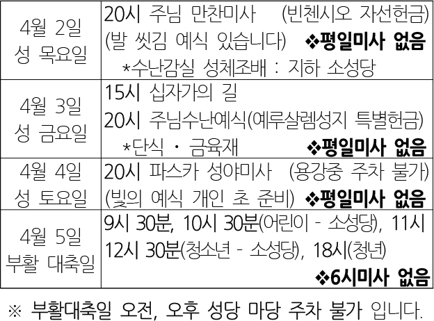 | 2627 | 전례 | 2026.03.25 | 10 | |
